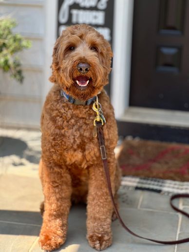 Lily is the daughter of our Phoebe and Lewis Manor's The Father, Odin. We have waited a long time for this girl, and the minute she was born, we knew she would be living with us. Lily lives life with such enthusiasm. She lights up the room every time she walks in and can "turn that frown upside down" with her antics. She wants to please, and definitely wants to participate ! She has matured in temperament and structure that is everything we have hoped for. We love our resident redhead! Lily has completed her testing and will start her breeding career in 2022. Look for more readheads at "The Home of the Lucky Dood"!